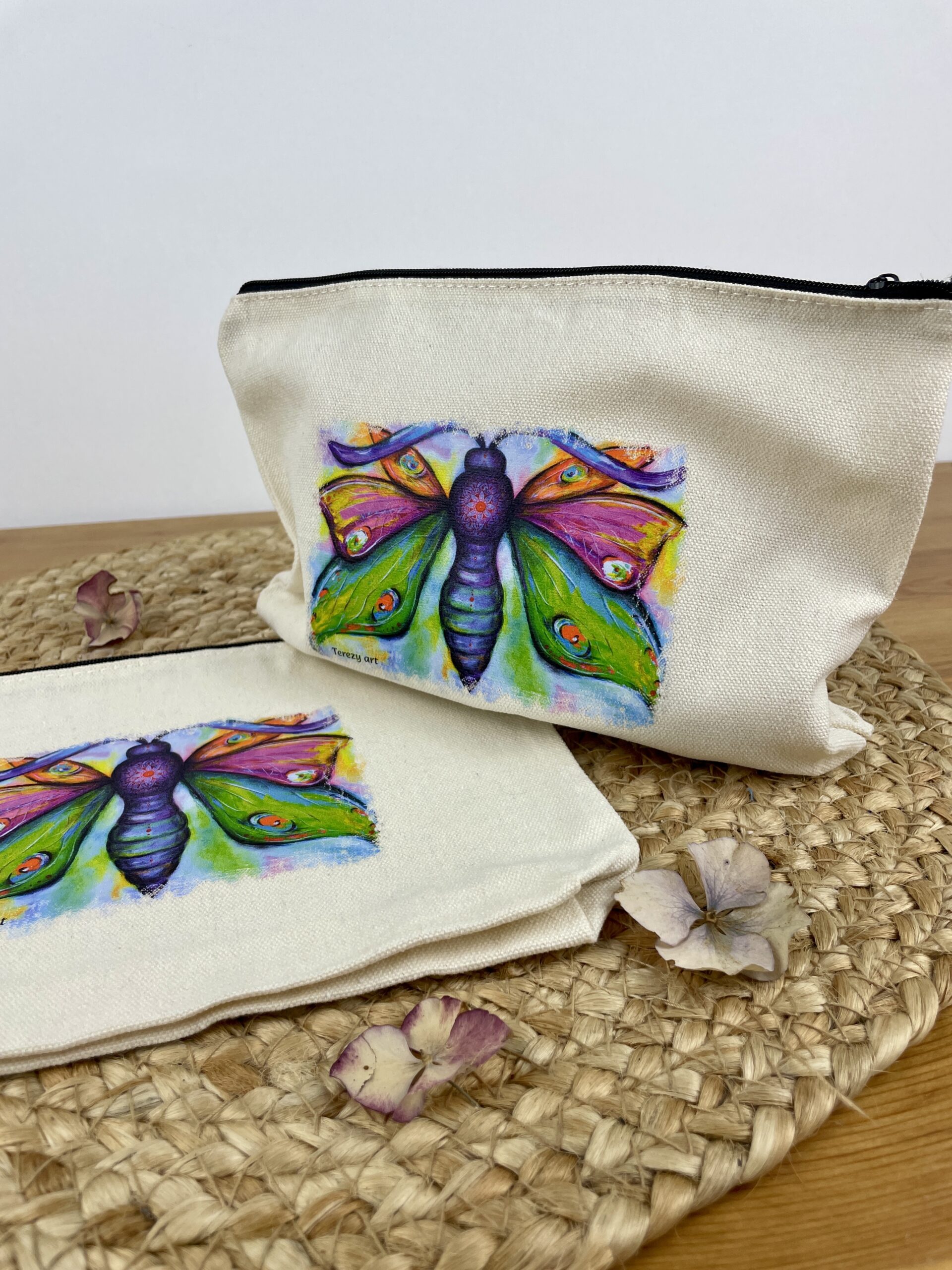 Plátěná kosmetická taška nebo penál s motivem motýla z obrazu s názvem Ze (mě)