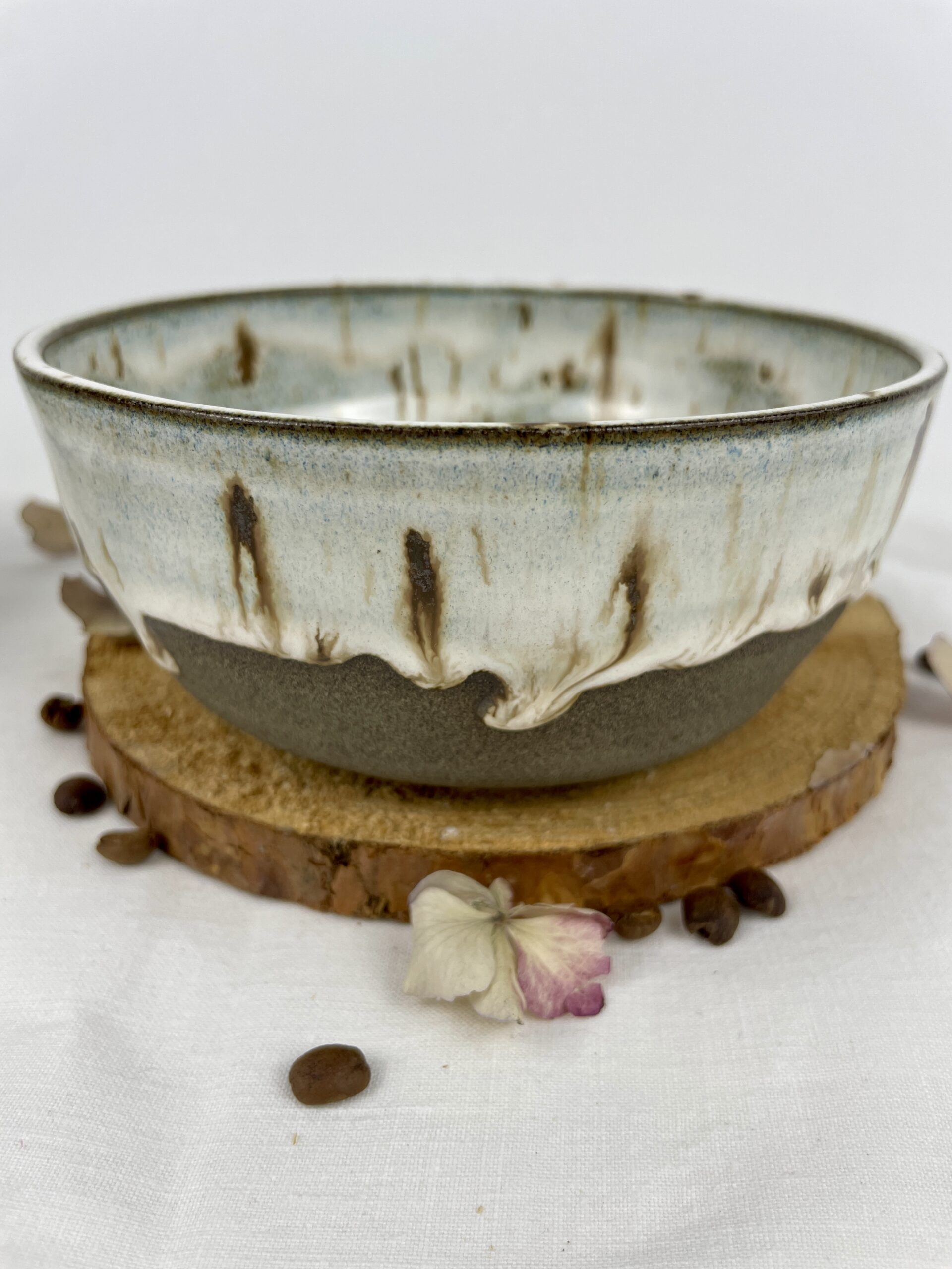 Točená vyšší snídaňová miska z tmavé kameniny